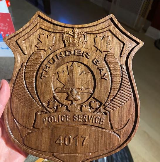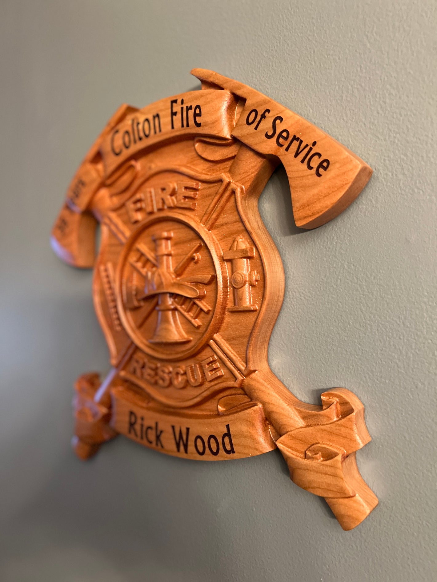 Needed this item ASAP and he delivered as promised. Even double checked my item because I ordered something different than discussed. Item was a TPS wood logo with badge number engraved. It looks amazing, and is a perfect retirement gift. Thank you!