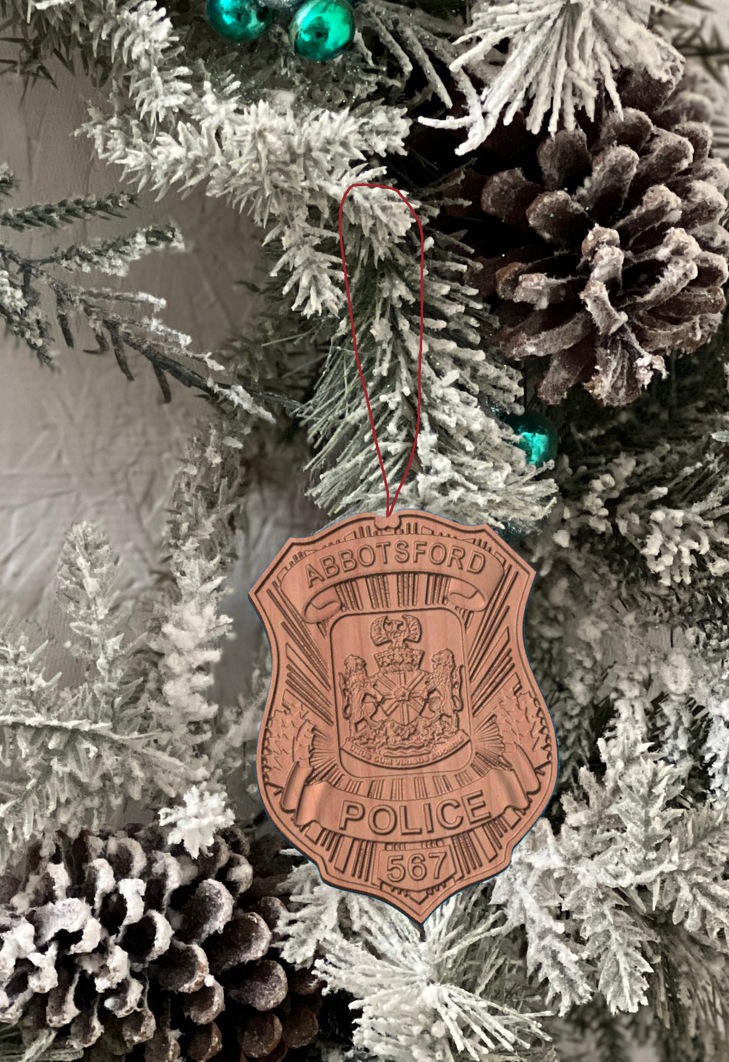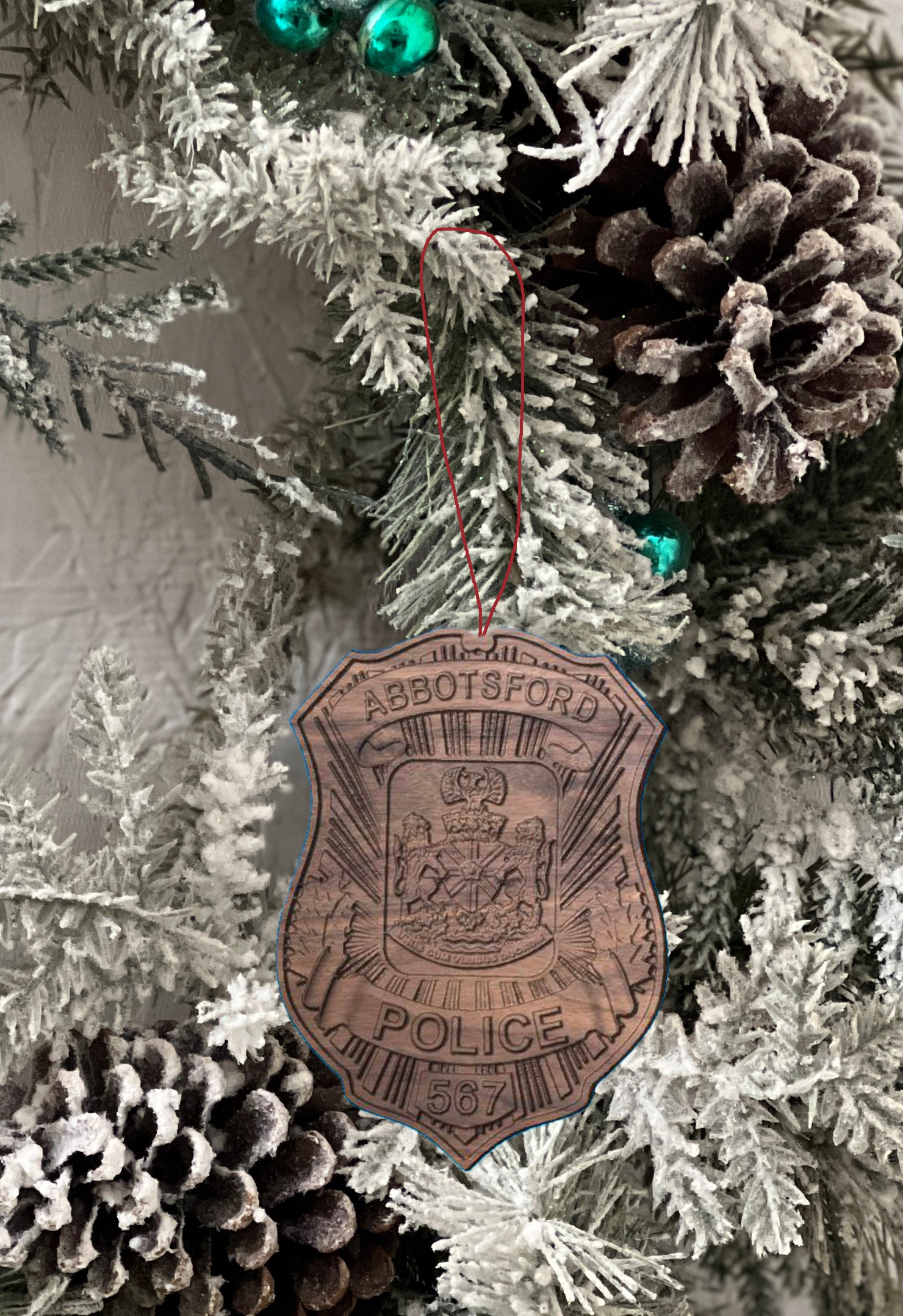 Custom carved Abbotsford Police Christmas ornaments made to order.