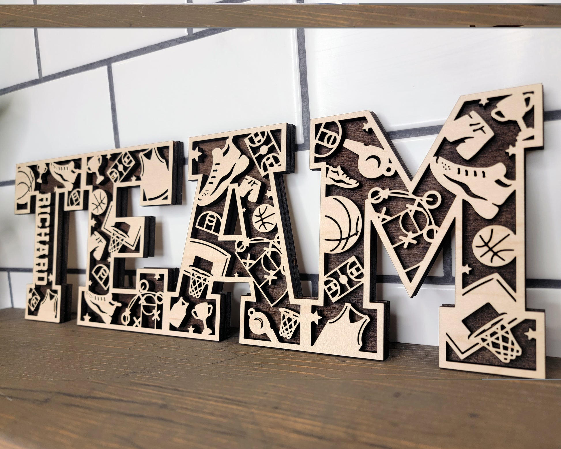 These are two layer Basketball signs made with acrylic or wood. There are several colours to choose from. If you want some customization (persons first name, team name, etc), please enter it in the personalization box.