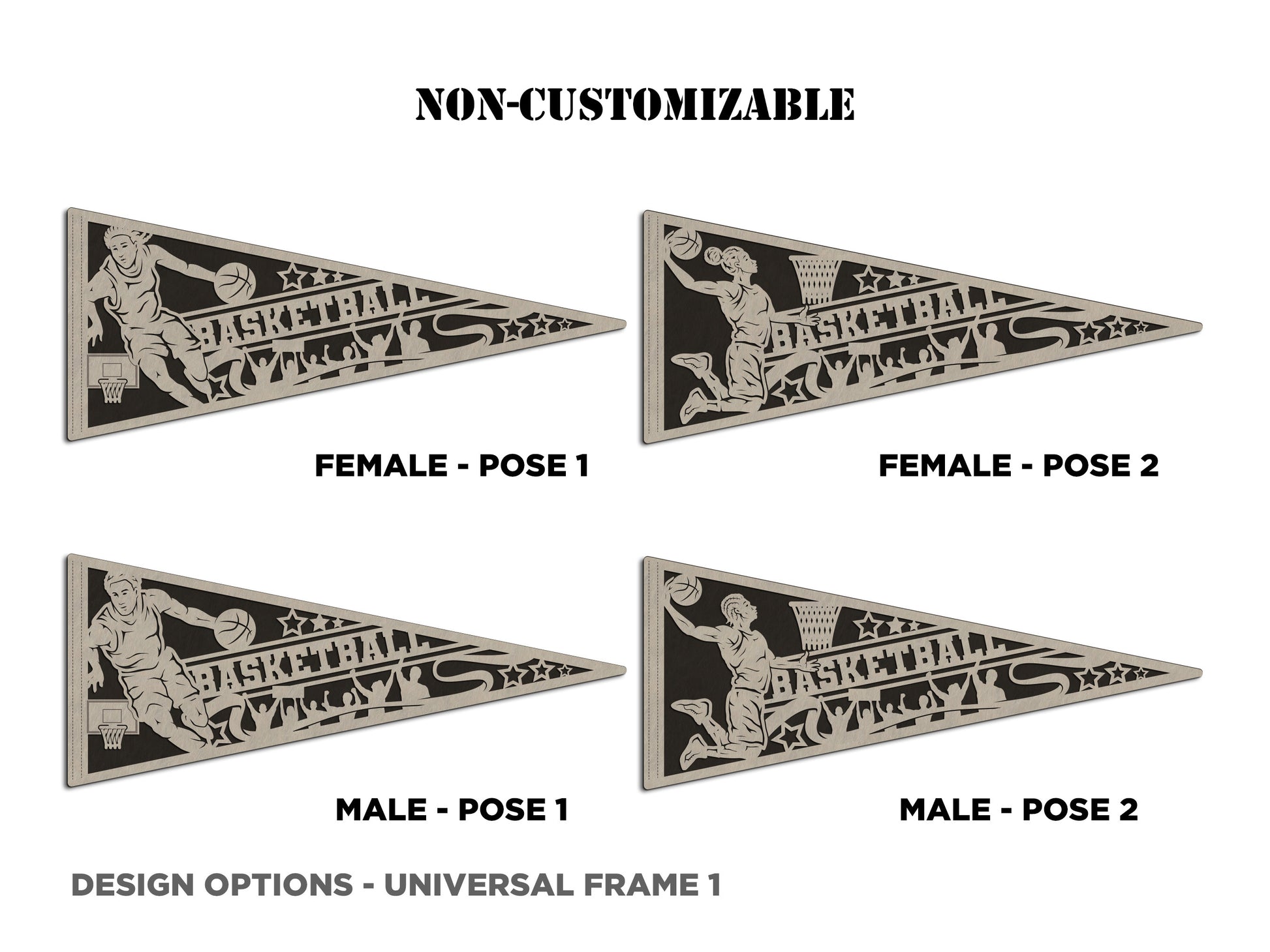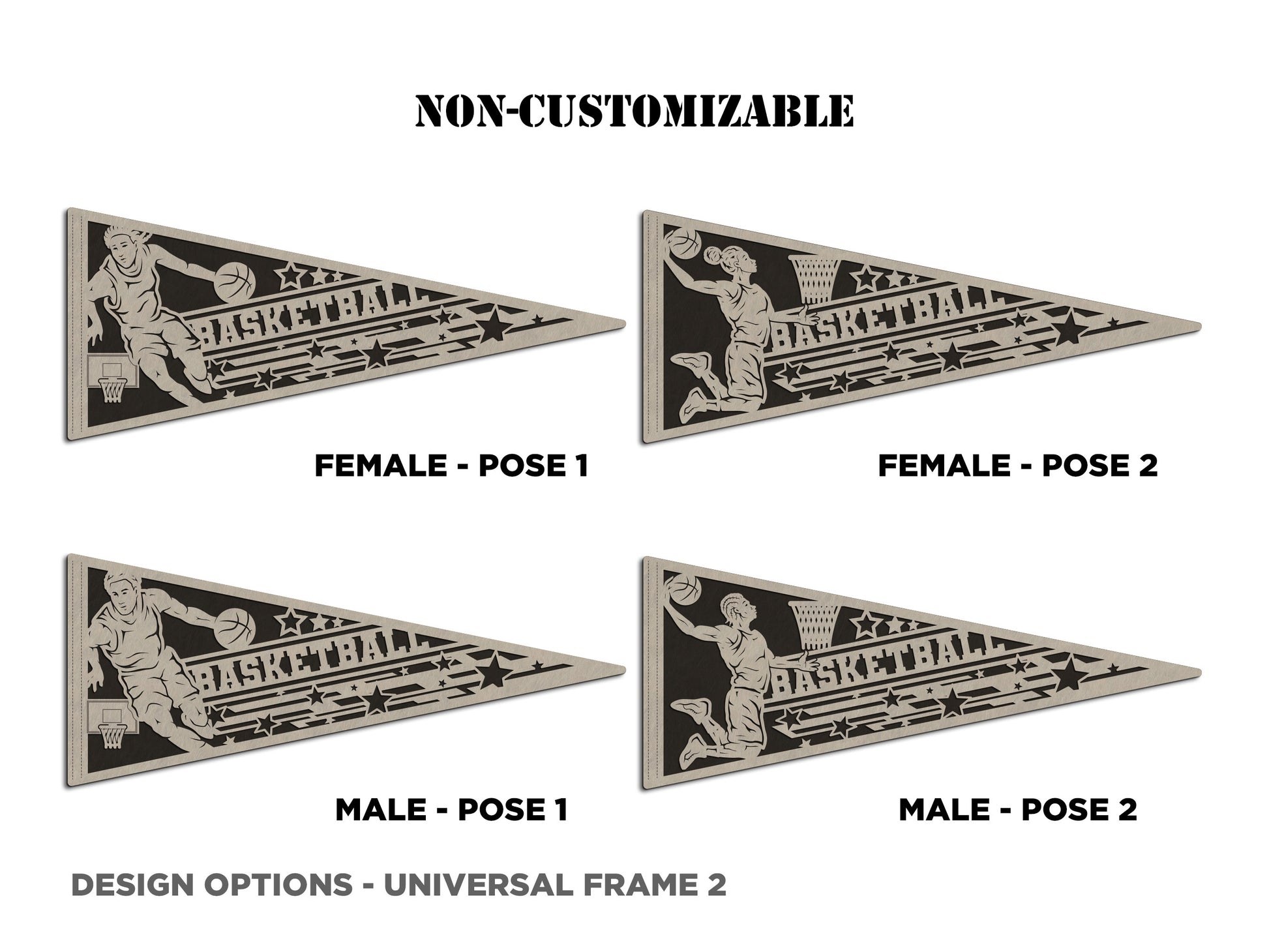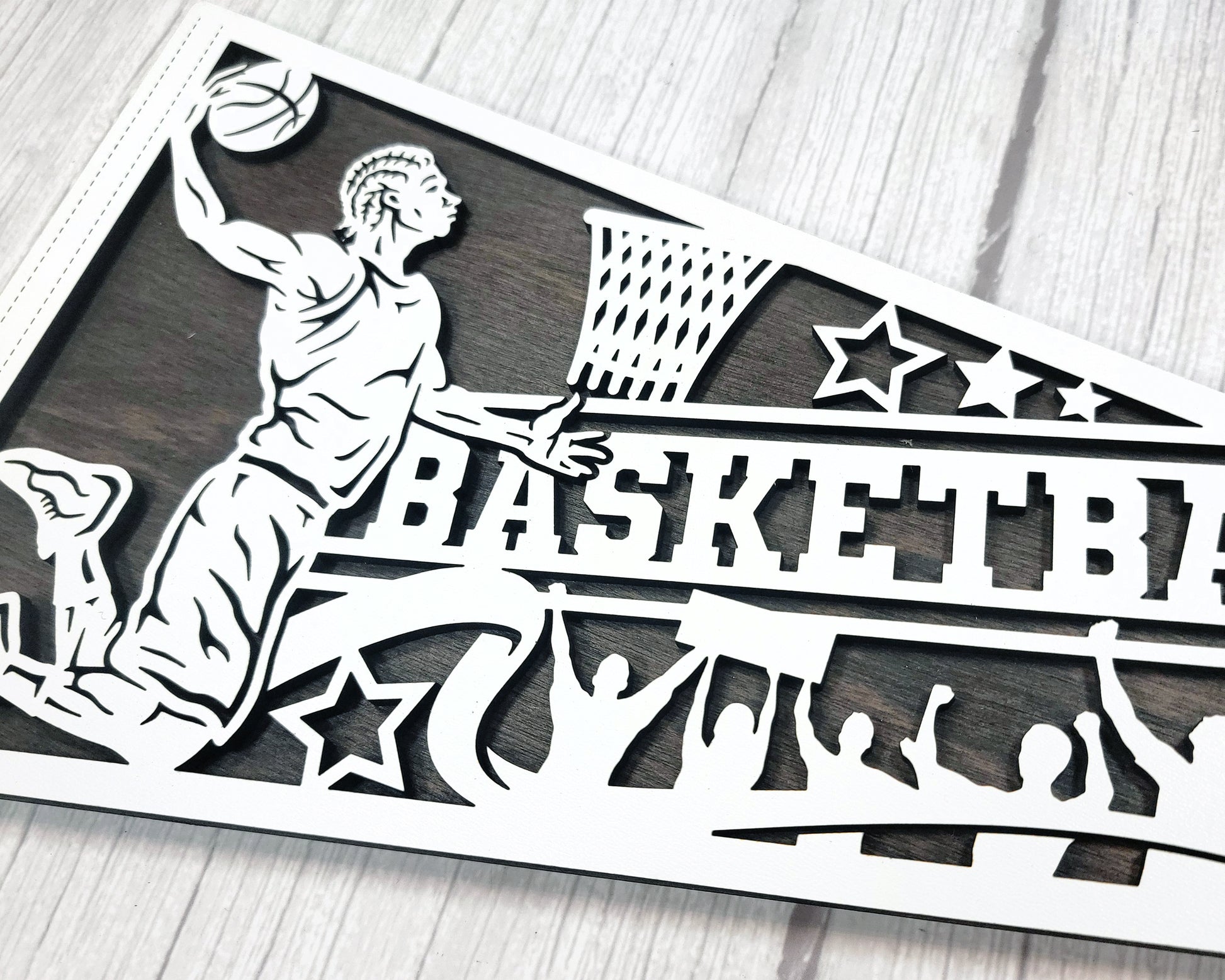 These are two layer Basketball Pennants made with acrylic or wood. There are several colours to choose from. If you want some customization (persons first name, team name, etc), please enter it in the personalization box.