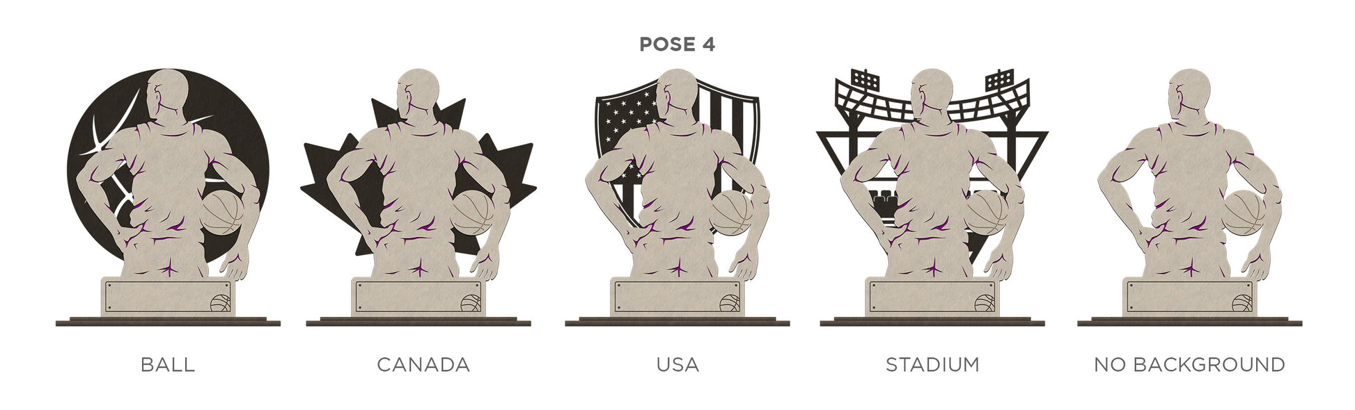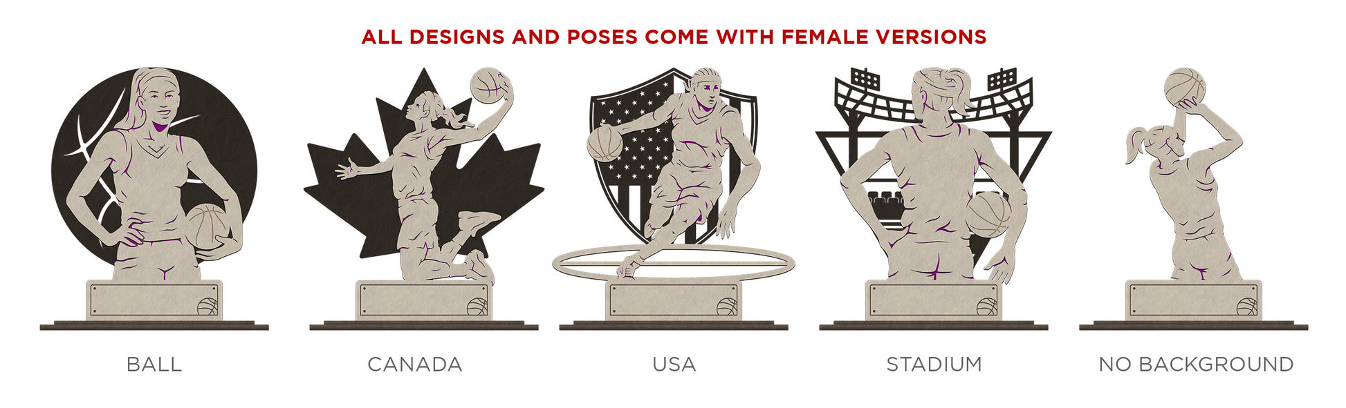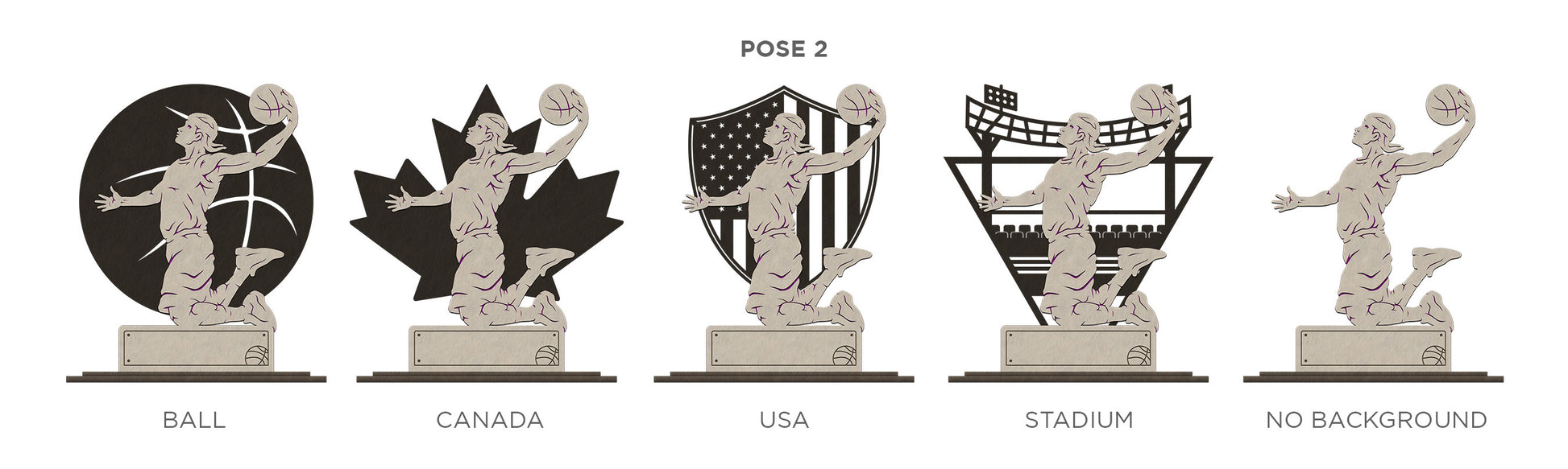 These are two or three layer Basketball Stand-up pieces made with acrylic or wood. There are several colours to choose from. If you want some customization (persons first name, team name, etc), please enter it in the personalization box.