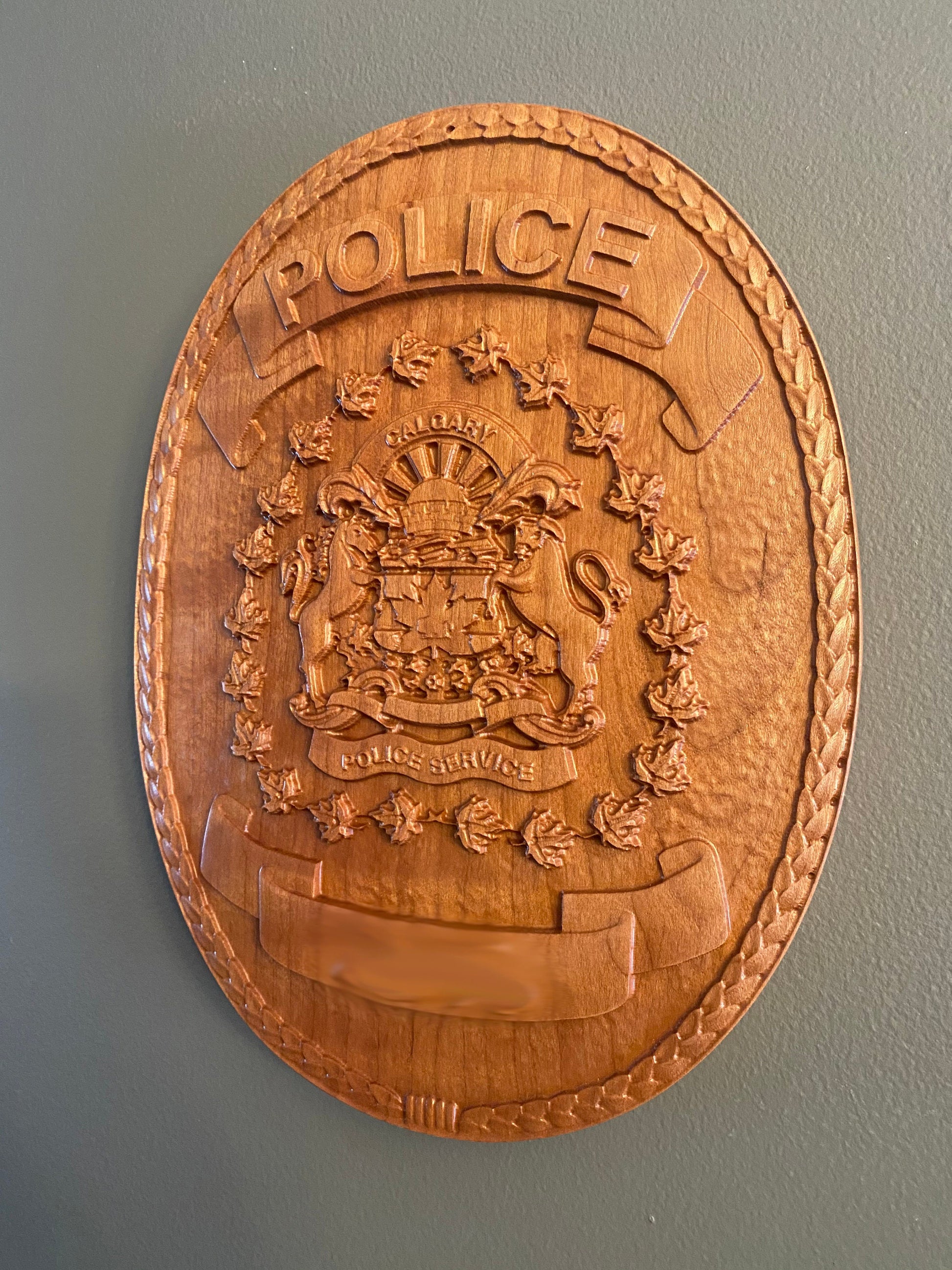These badges are finished with a professional grade Urethane Resin and I put a saw tooth hanger on the back so it can be hung on the wall.