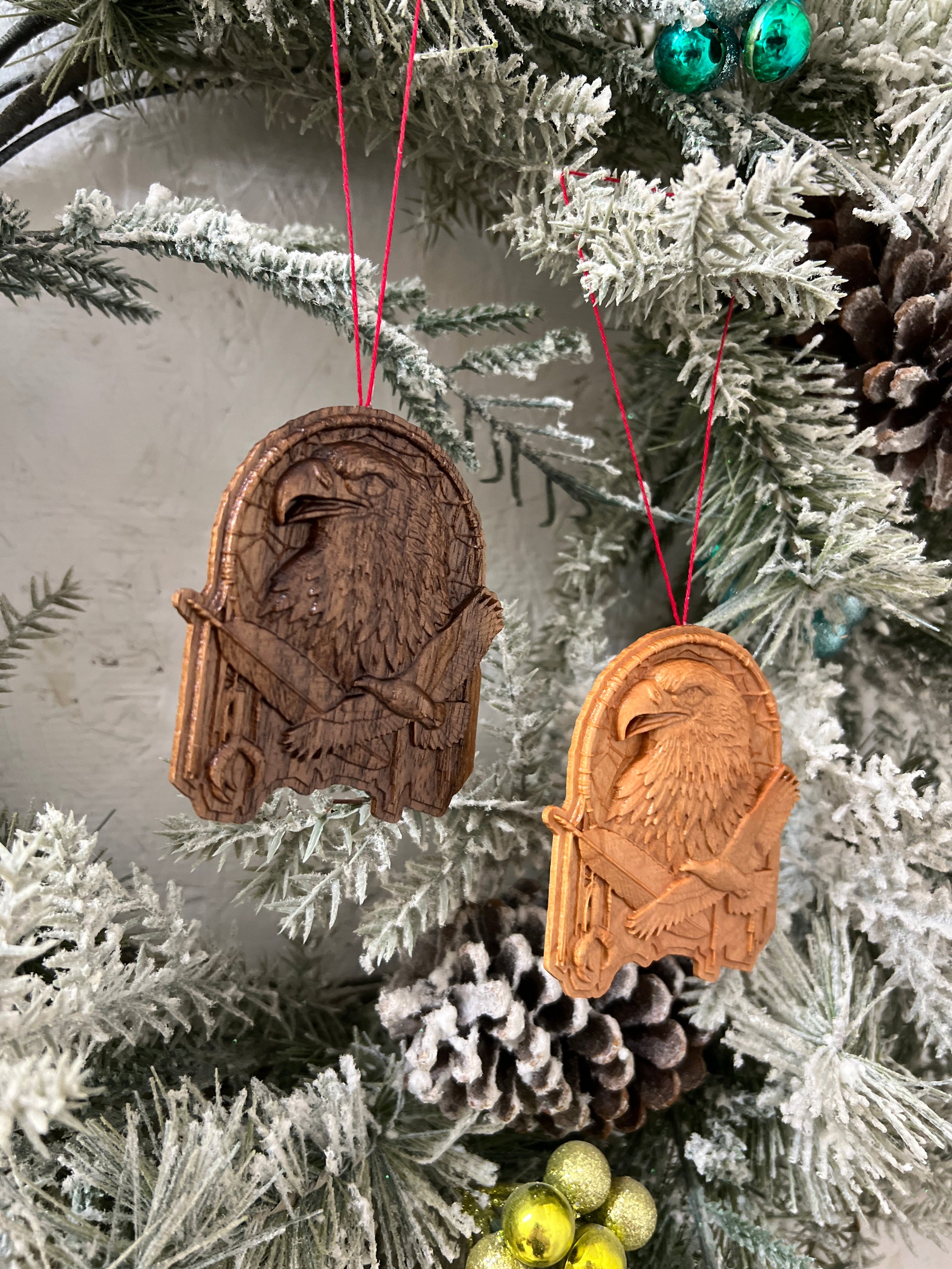 These are solid wood ornaments in the shape of a dreamcatcher. They are made in either Cherry or Walnut wood.