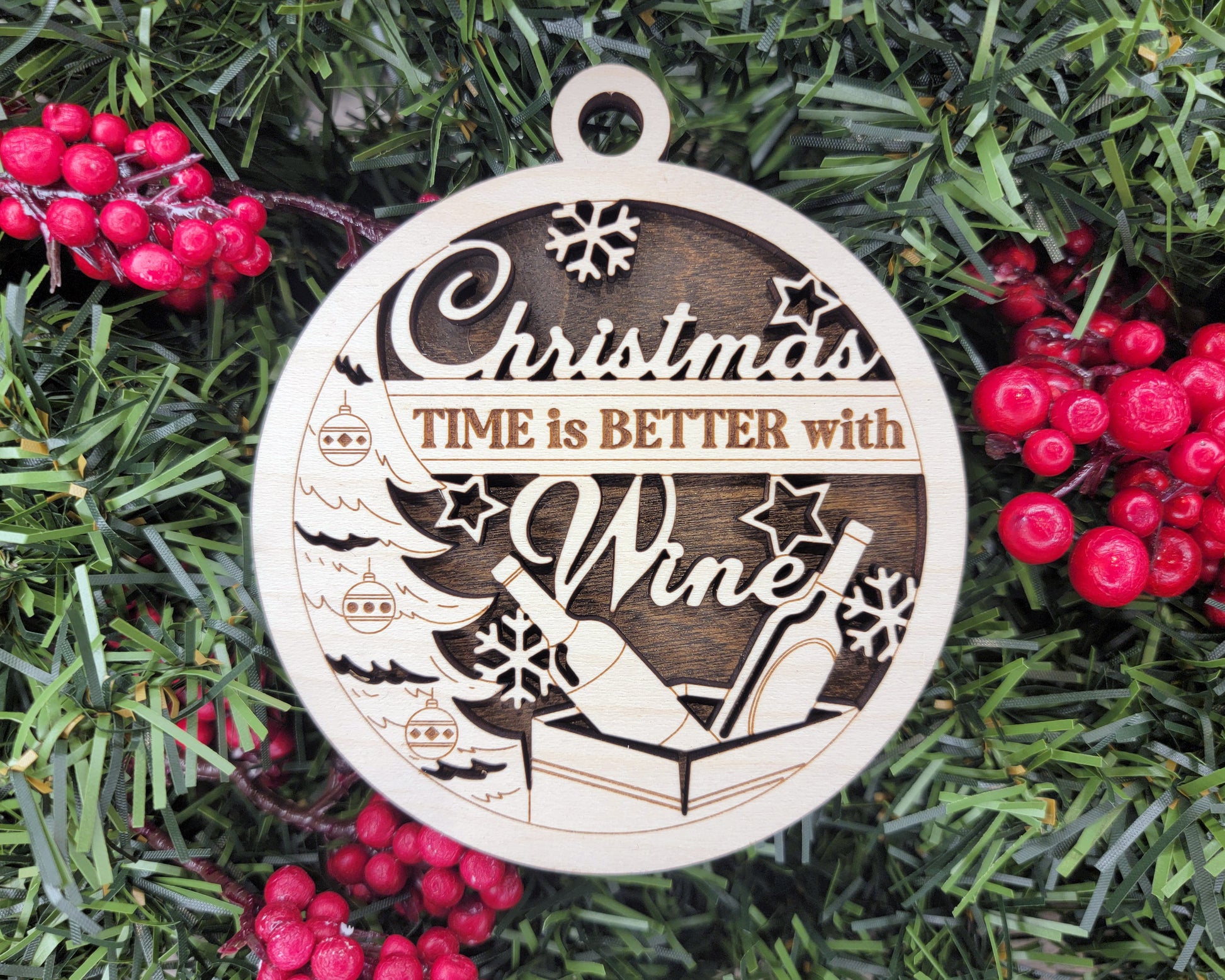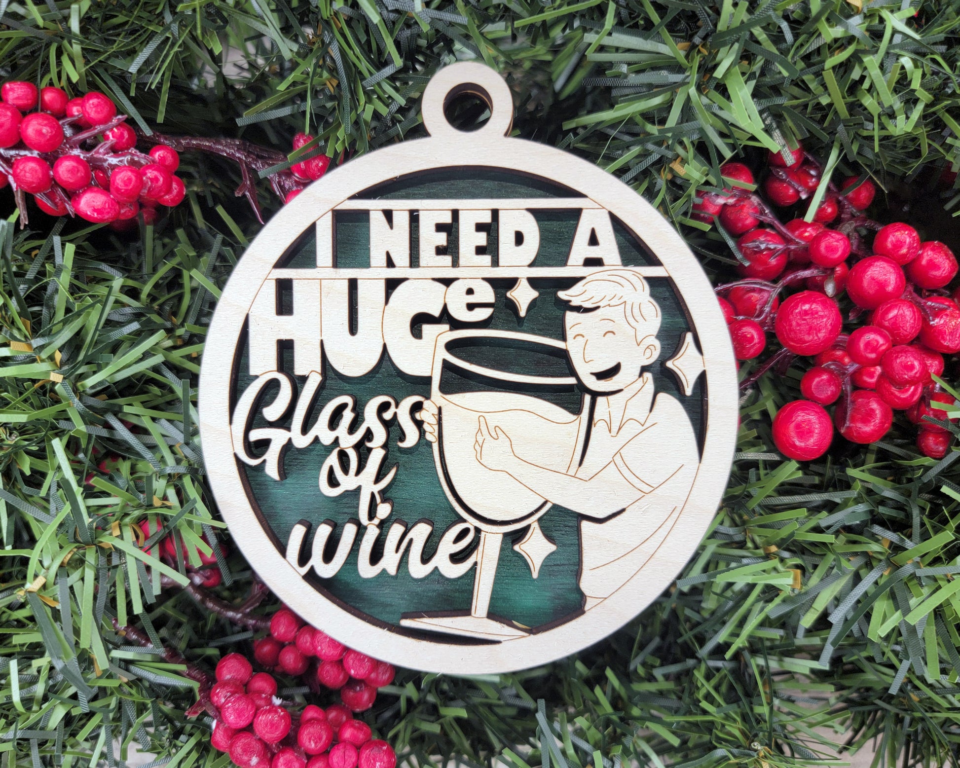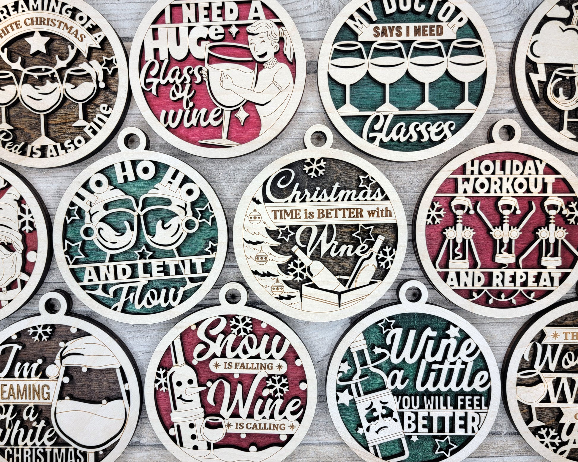 These are two layer Cute and Funny Wine Lover Ornaments made with acrylic or wood.