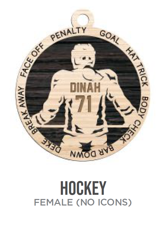 These are two layer Hockey ornaments made with acrylic or wood. There are several colours to choose from. If you want some customization (persons first name, team name, etc), please enter it in the personalization box.