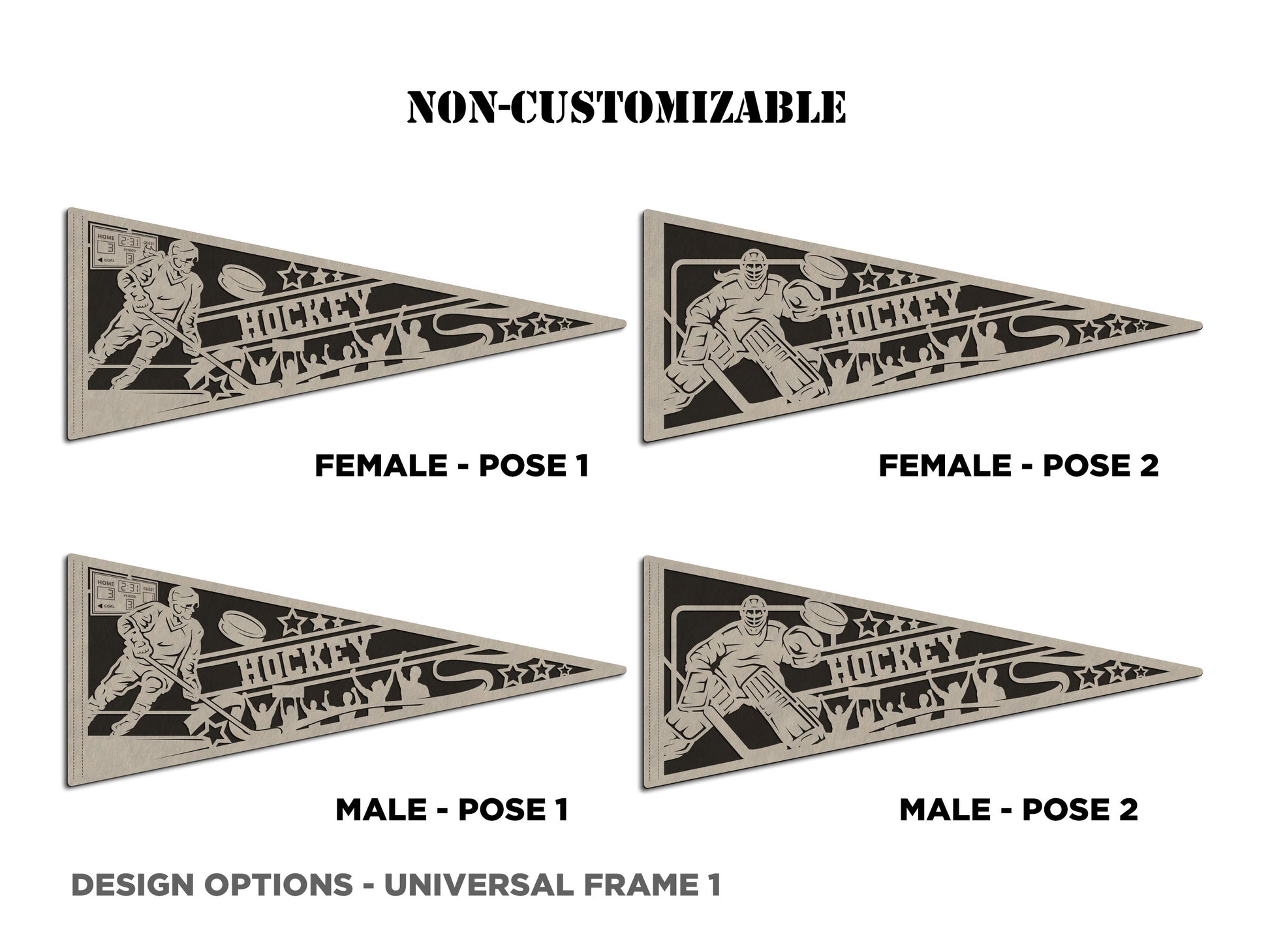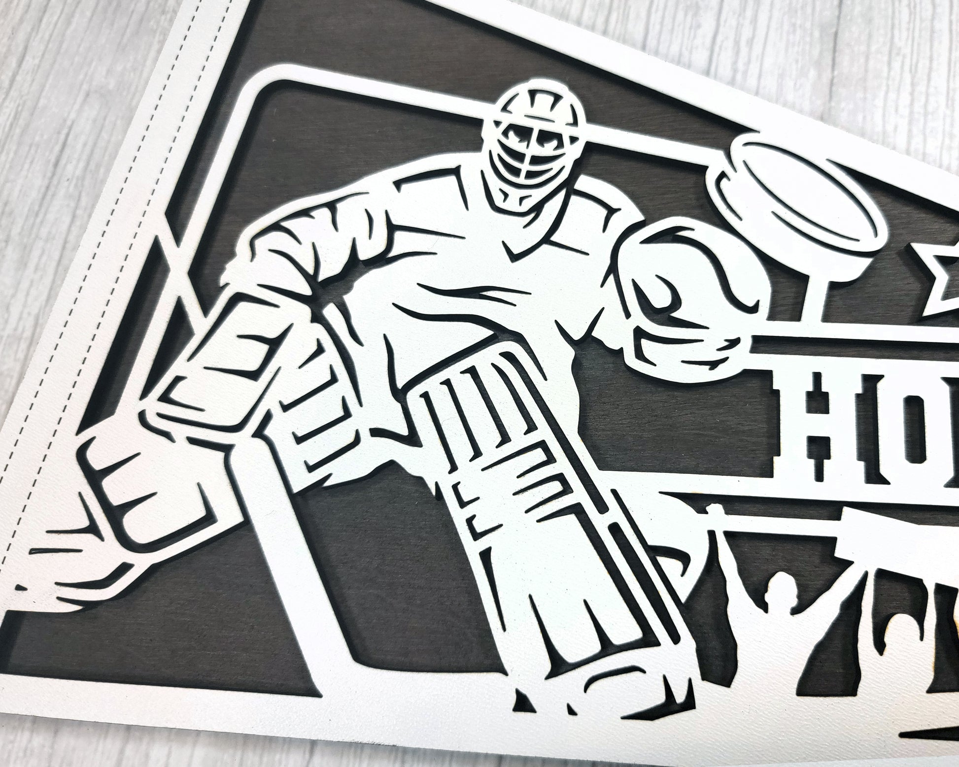 These are two layer Hockey Pennants made with acrylic or wood. There are several colours to choose from. If you want some customization (persons first name, team name, etc), please enter it in the personalization box.