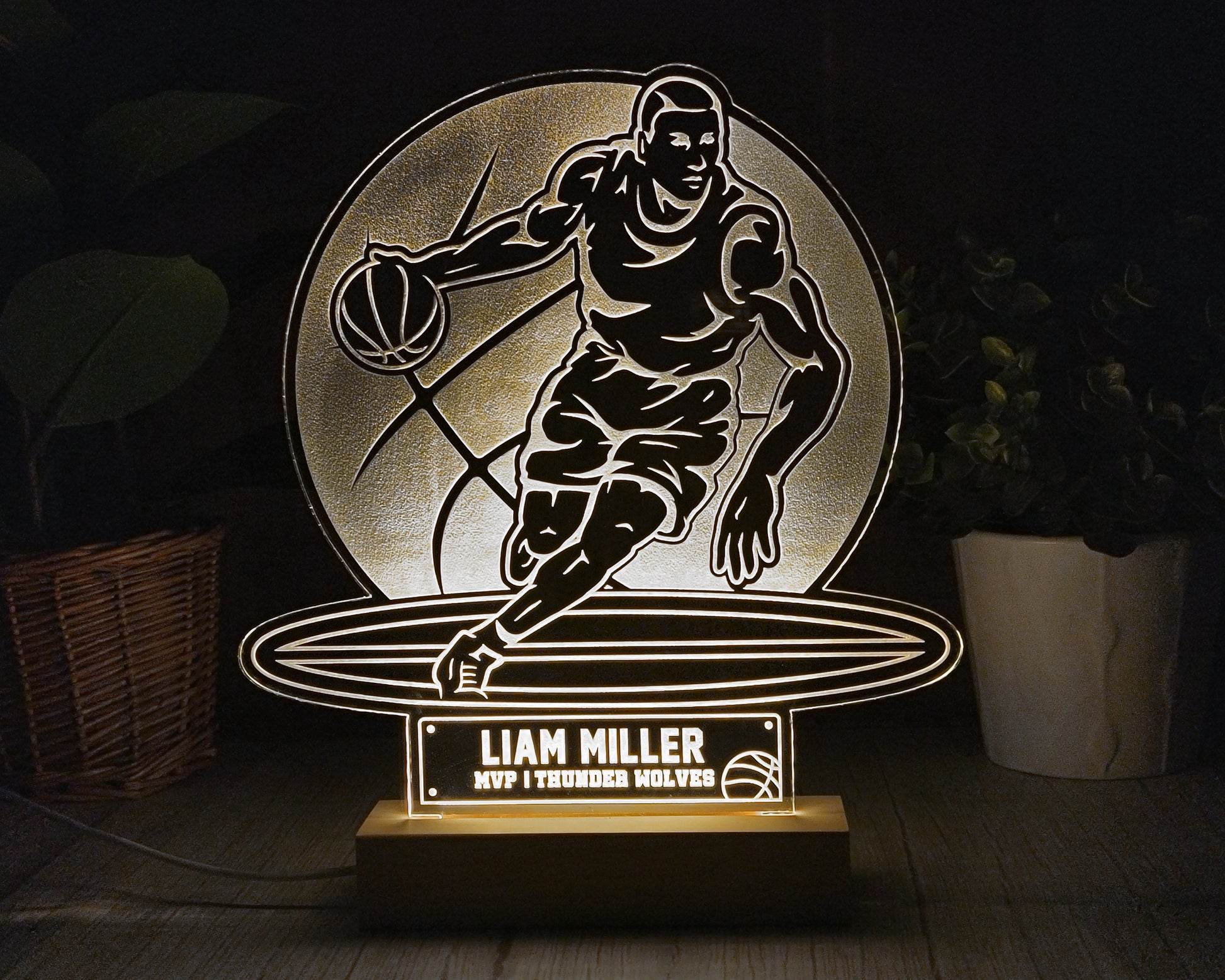 These are one layer clear acrylic light up stands with an LED Base. If you want some customization (persons first name, team name, etc), please enter it in the personalization box.