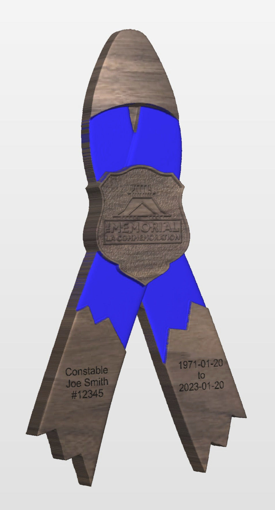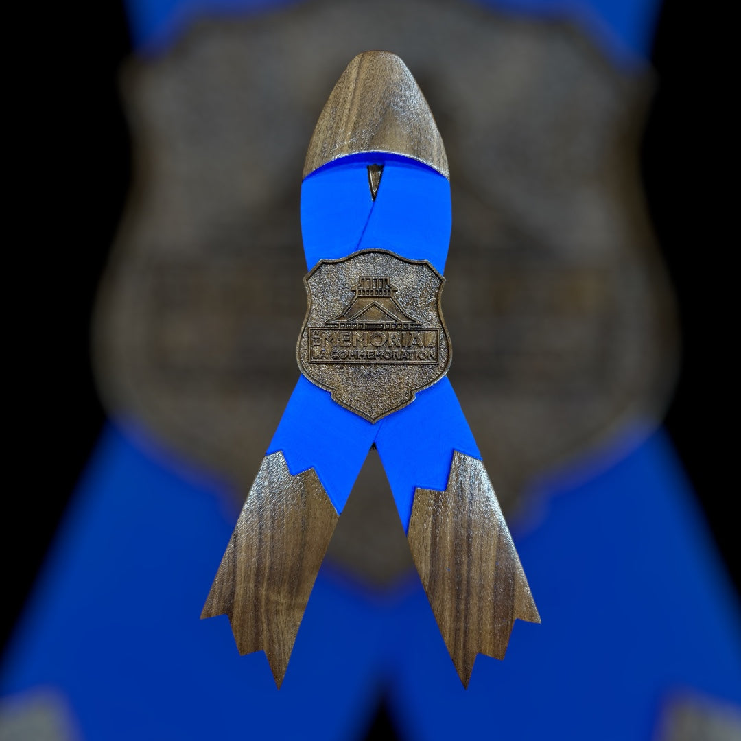 These are wooden version of the popular Police & Peace Officers' Memorial Ribbons. Every purchase raises money for the Memorial Society.