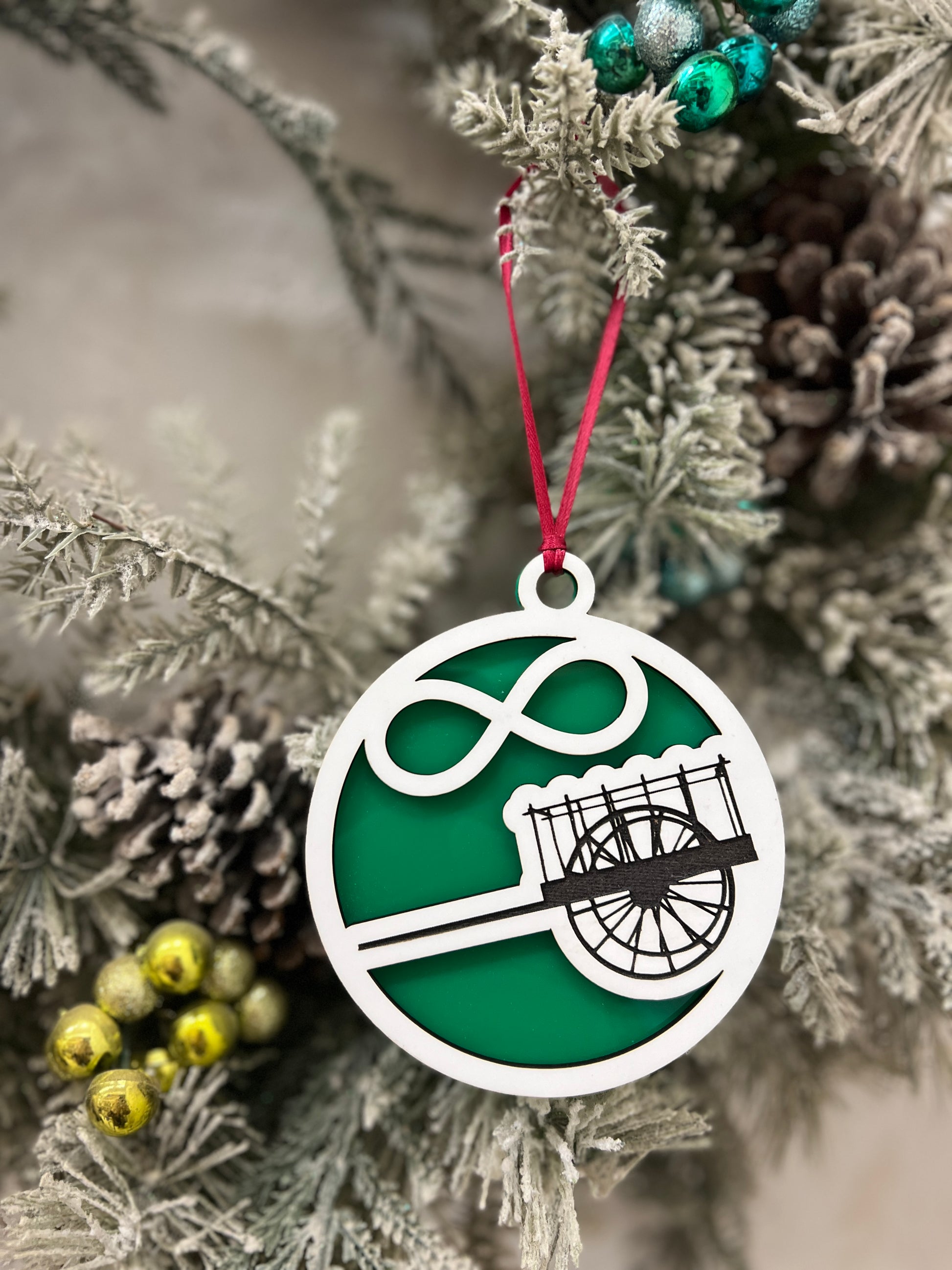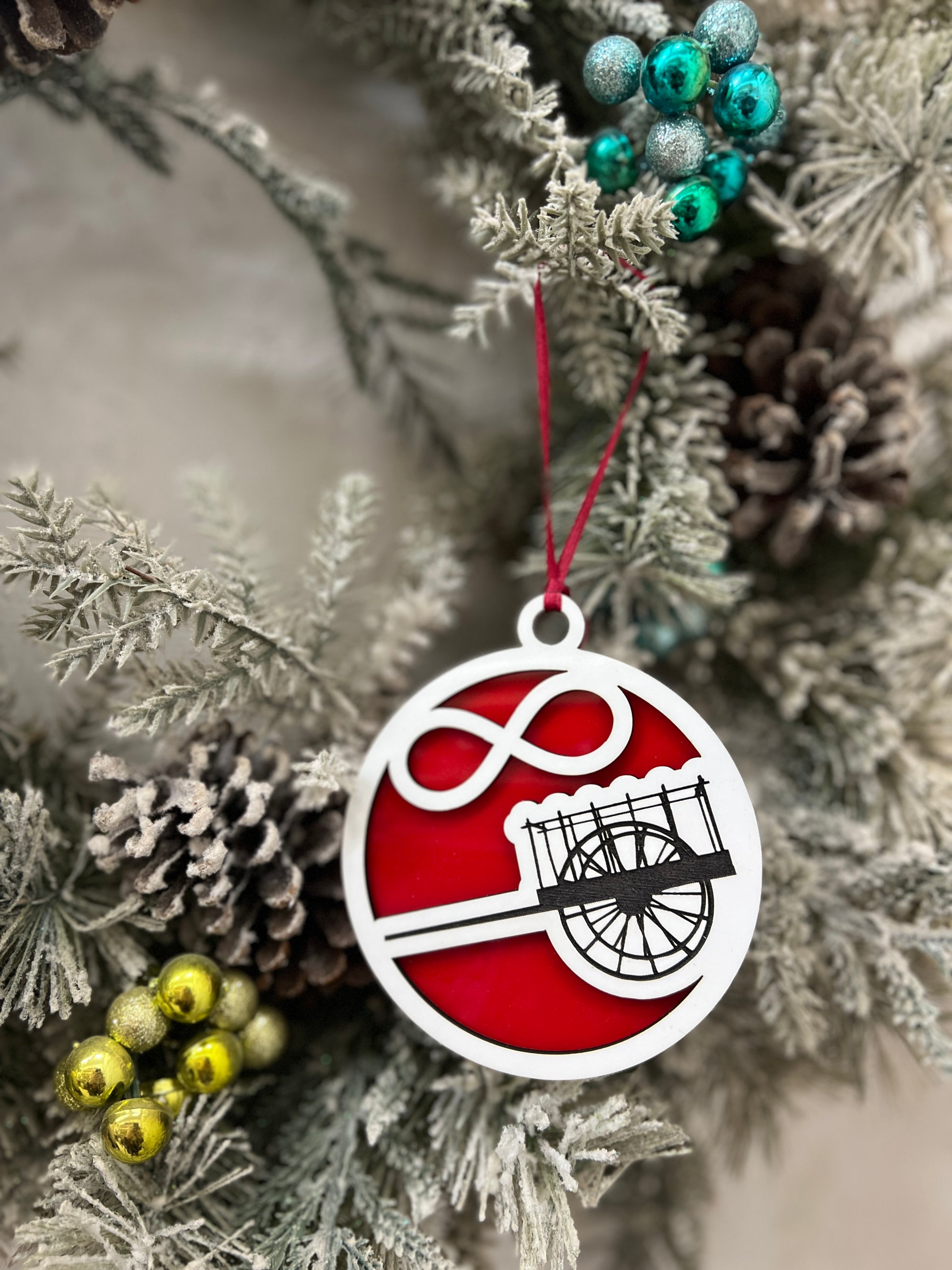 These are two layer ornaments made with acrylic or wood. There are several colours to choose from.