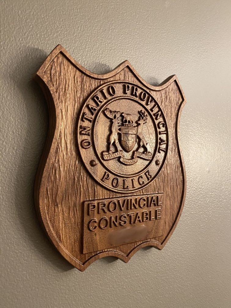 Please include what you want on the front of the badge (ie. Provincial Constable 12345).