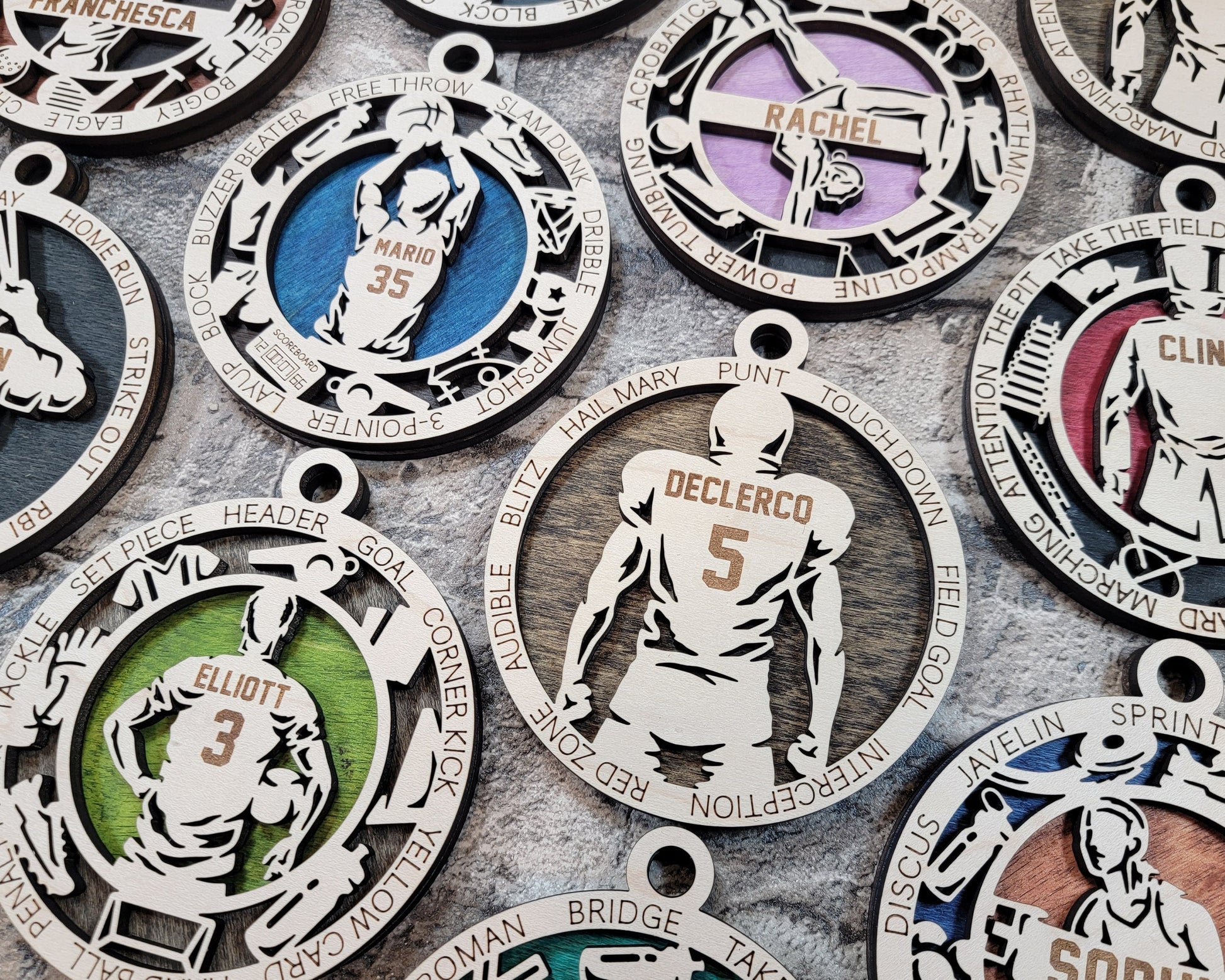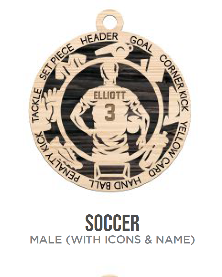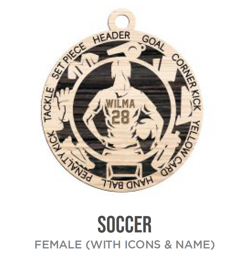 These are two layer Soccer ornaments made with acrylic or wood. There are several colours to choose from. If you want some customization (persons first name, team name, etc), please enter it in the personalization box.