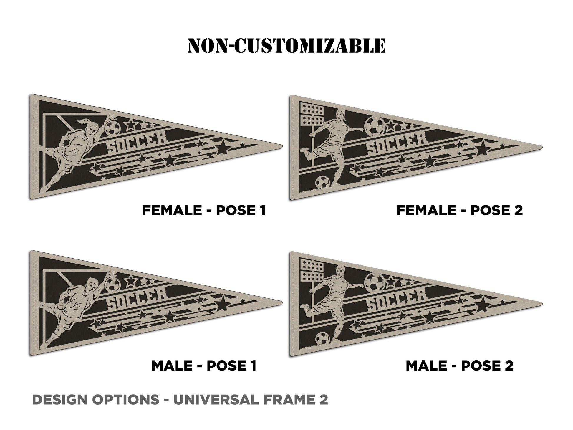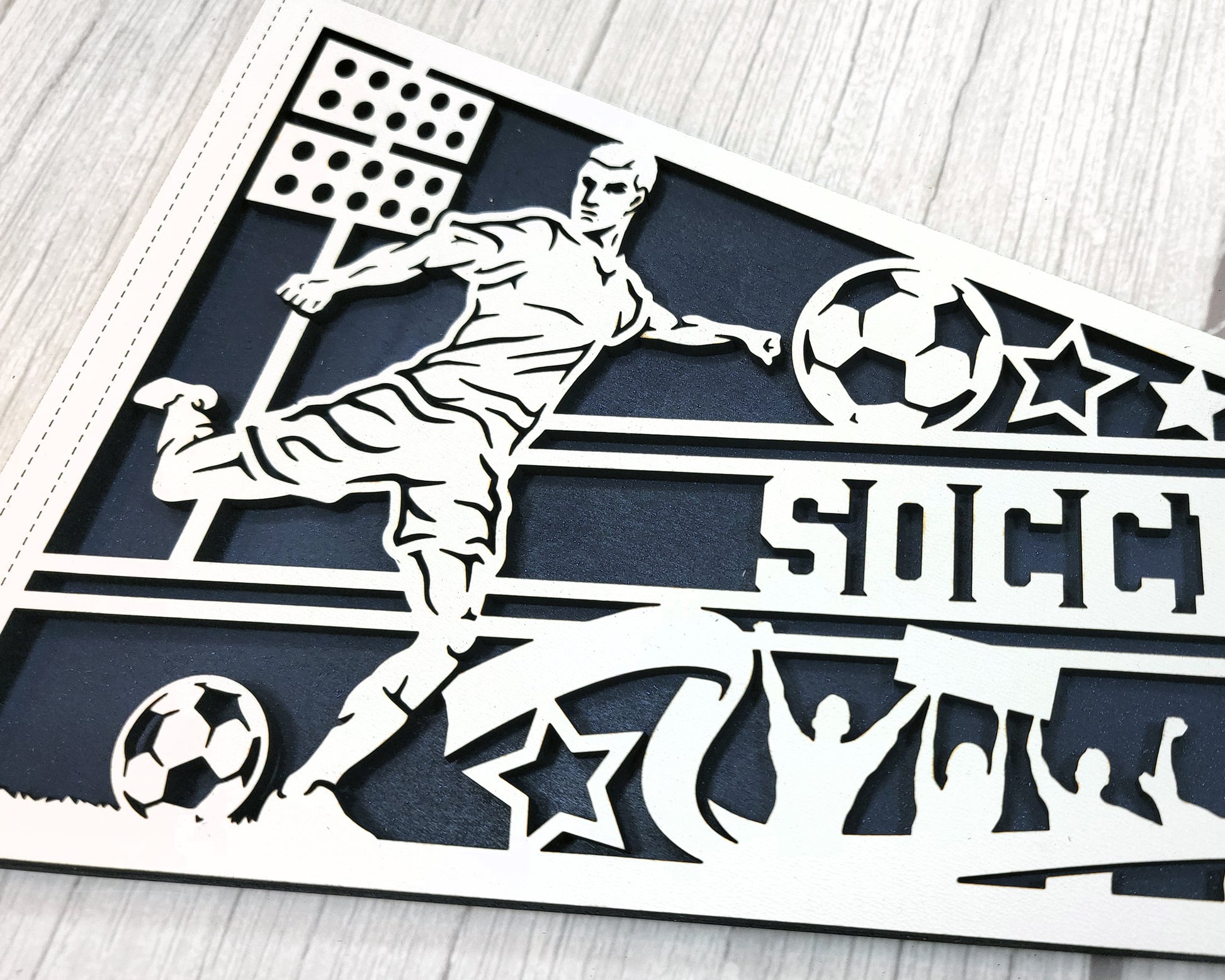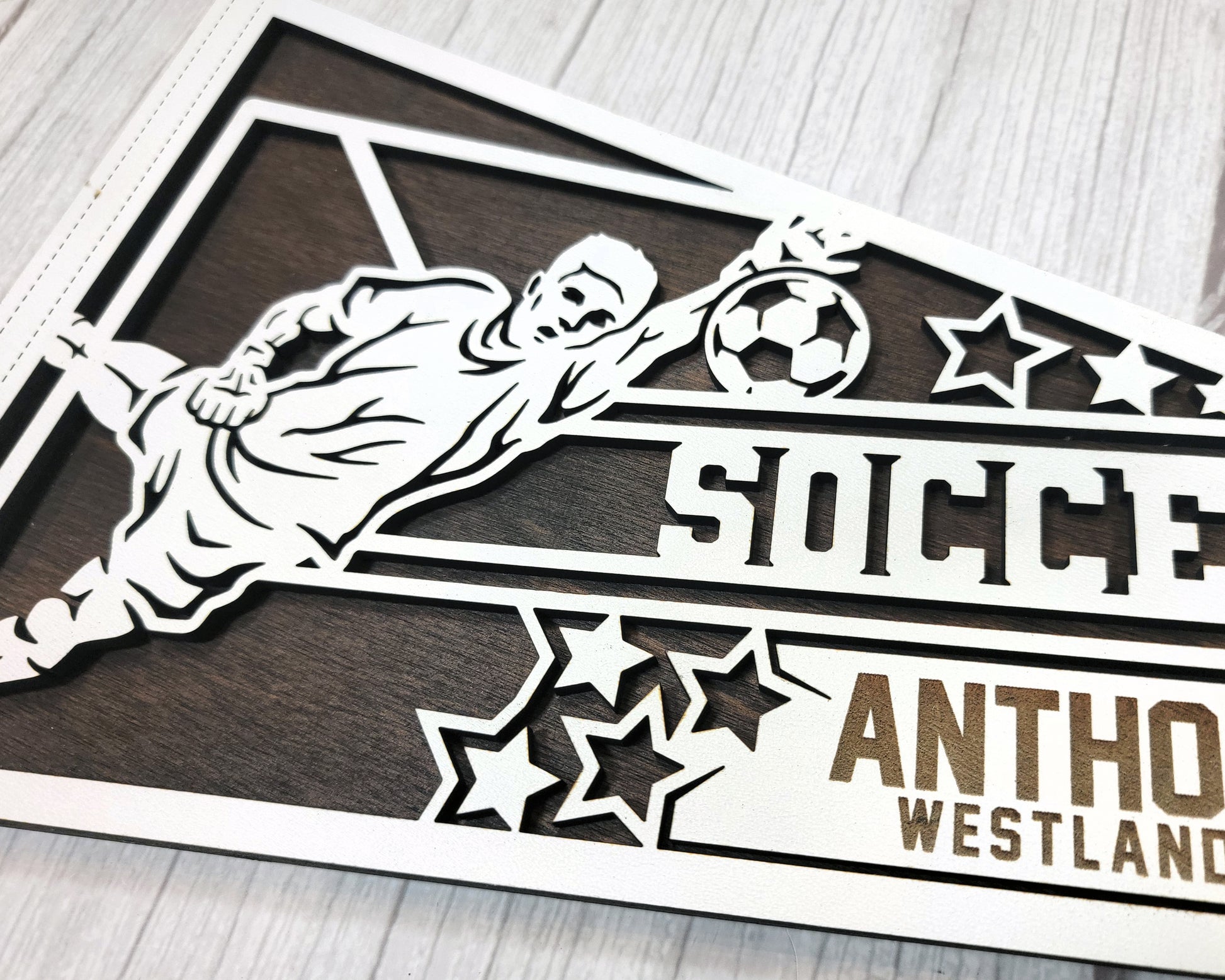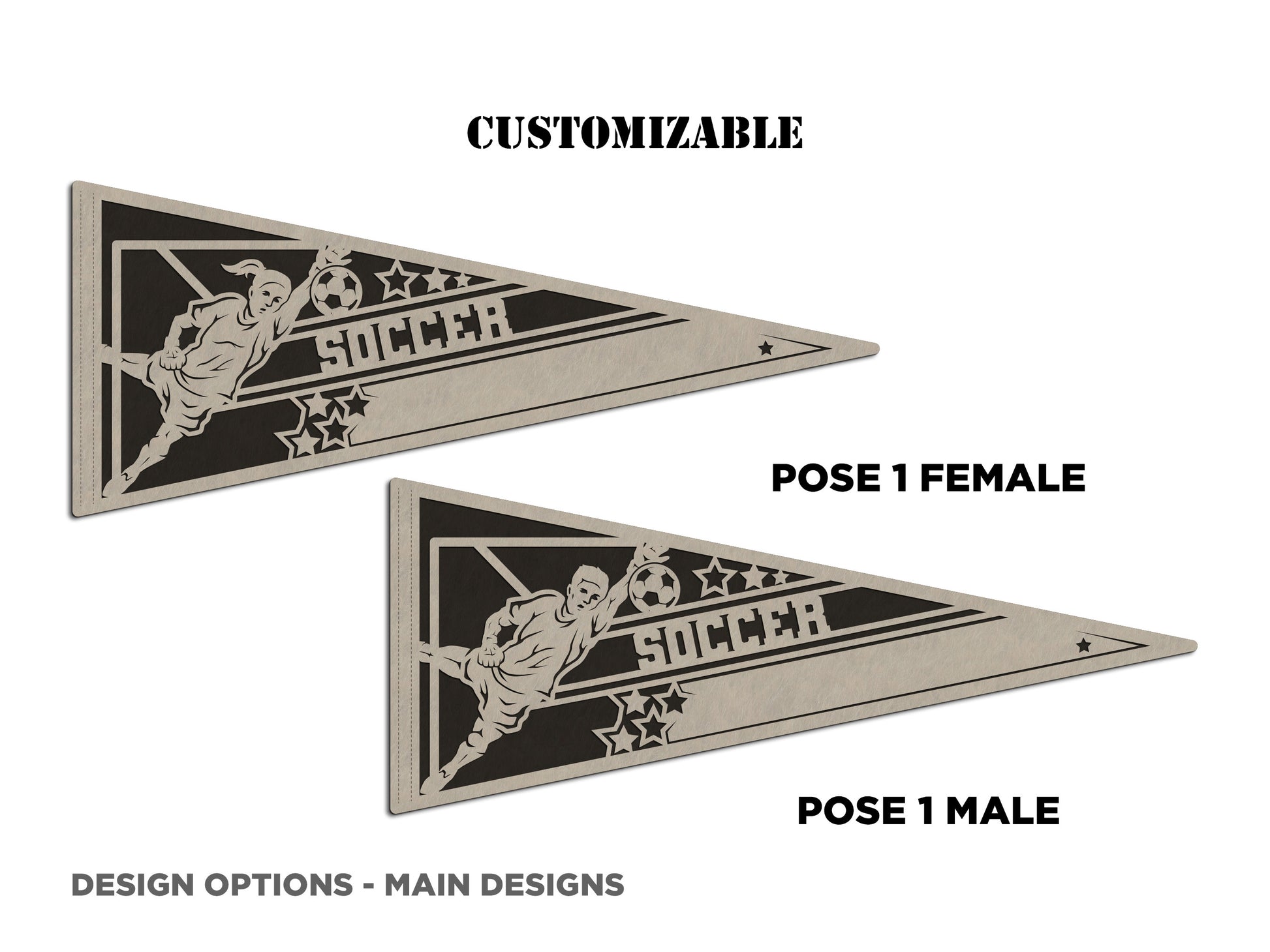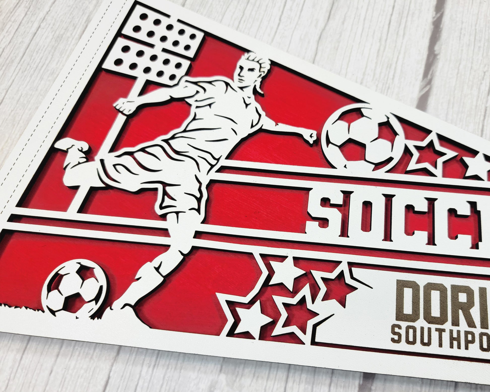 These are two layer Soccer Pennants made with acrylic or wood. There are several colours to choose from. If you want some customization (persons first name, team name, etc), please enter it in the personalization box.